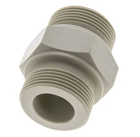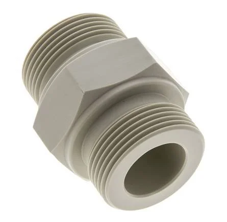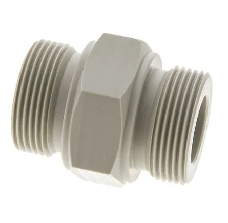 This double nipple is made of PP (polypropylene) material that makes it suitable for applications within a temperature range from 5 to 90 °C (41 to 194 °F). The maximum operating pressure is 10 bar (140.5 psi). The body material is FDA approved.