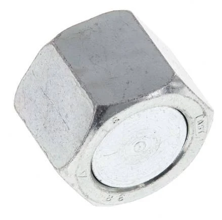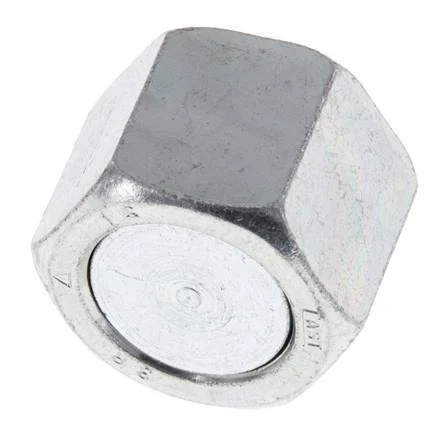 This ORFS closing screw connection is designed with the female threaded portion of the ORFS connection. Connection 1 has ORFS female UNS 1inch-14 threads. It is an end cap, so it has no output port. It is made out of steel and is galvanic/electrolytic zinc plated for surface protection. At 20 °C (68 °F), it can handle a maximum pressure of 400 bar (5802 psi).